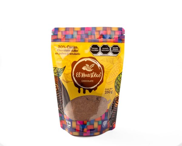 Chocolate dulce (30% cacao) granulado, ideal para preparar bebidas calientes y frías, rinde hasta para 4 litros de leche.